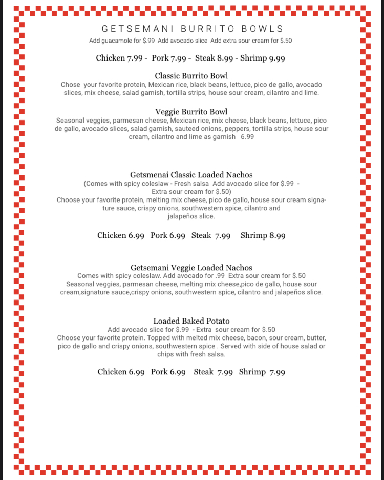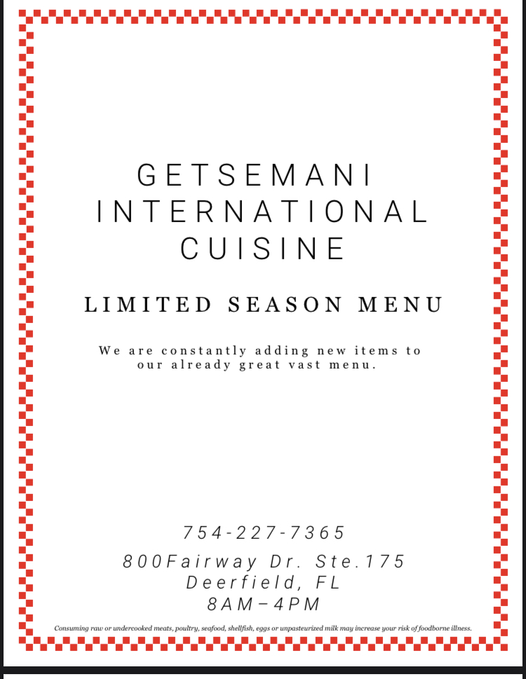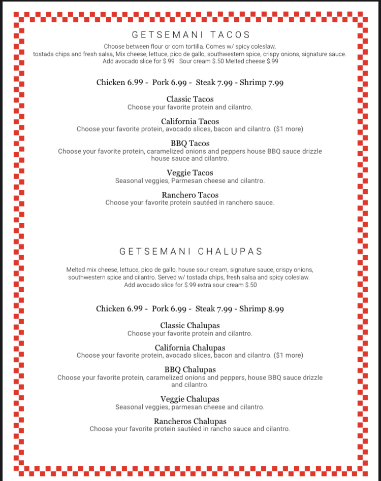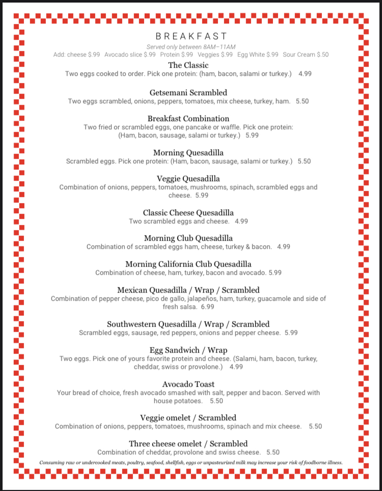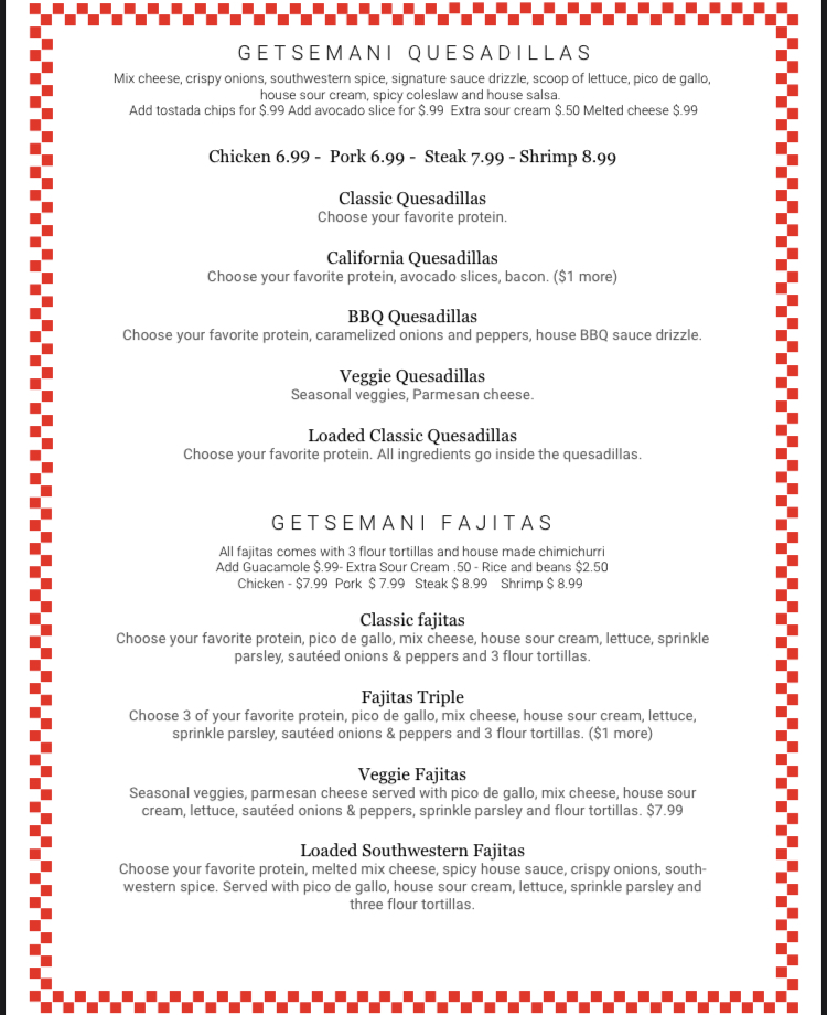Getsemani Café Deerfield Menu