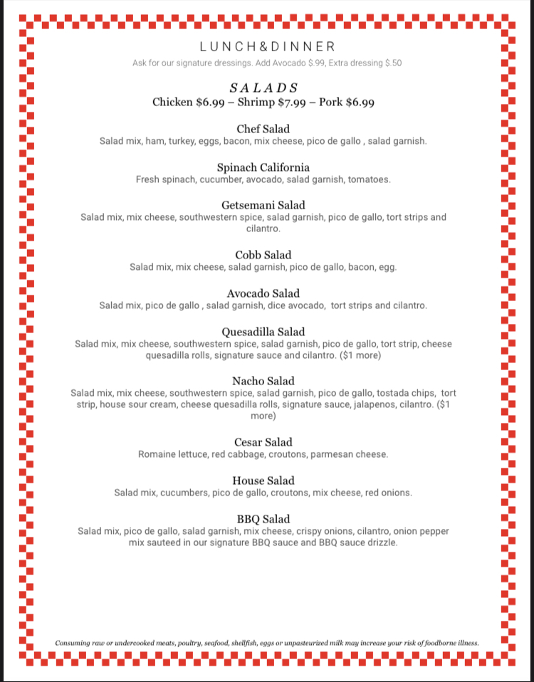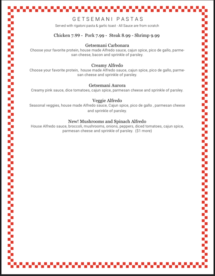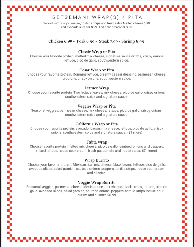 Getsemani Café Deerfield Gallery Menu
